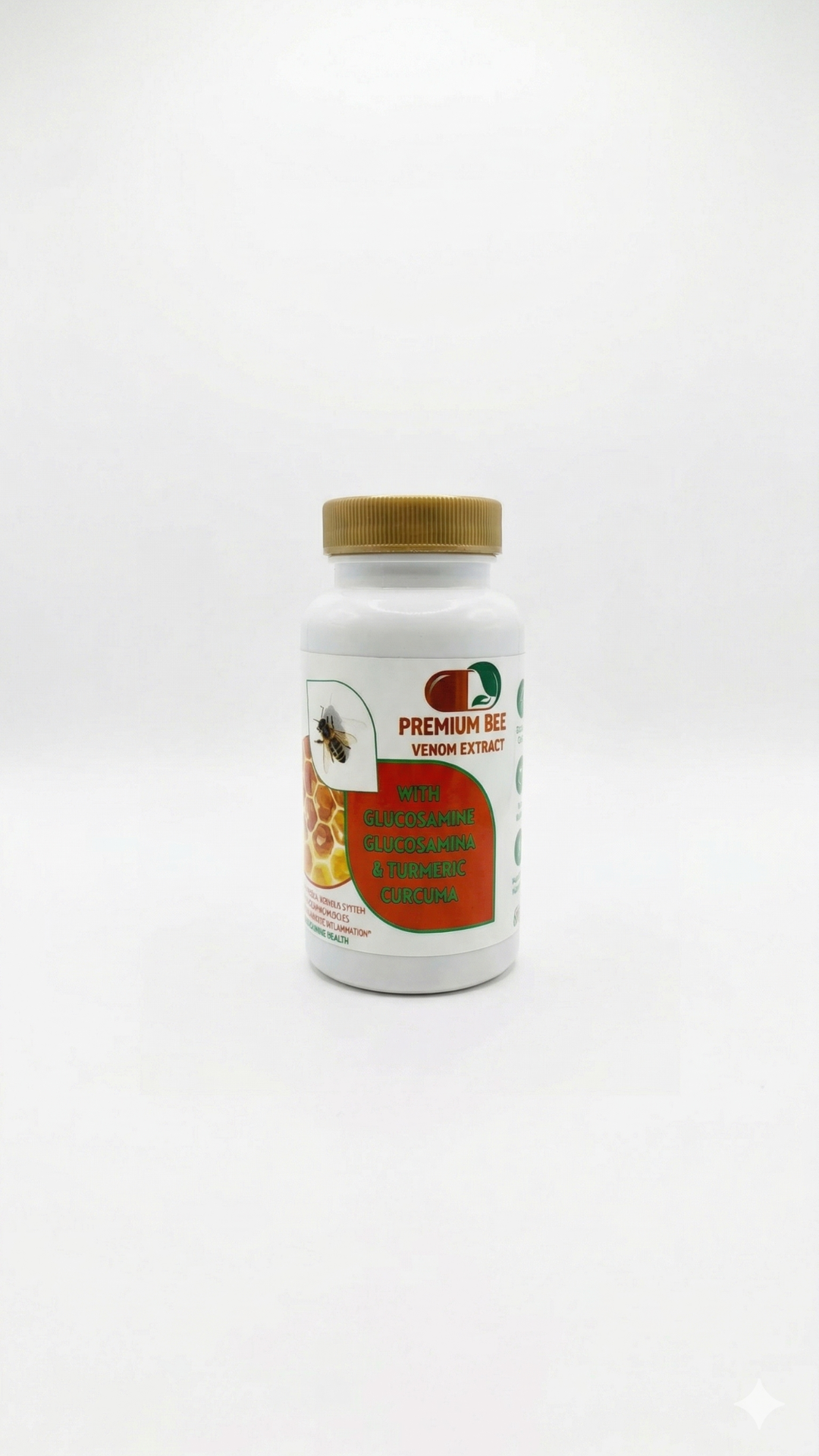 Premium Bee es un suplemento natural en cápsulas diseñado para mejorar la salud de tus articulaciones. Formulado con glucosamina y cúrcuma, ayuda a aliviar el dolor y la rigidez, fortaleciendo el cartílago y el tejido articular. Gracias a su extracto de veneno de abeja, este producto ofrece un enfoque natural y efectivo para mantener tus articulaciones saludables, flexibles y fuertes, favoreciendo tu bienestar diario.